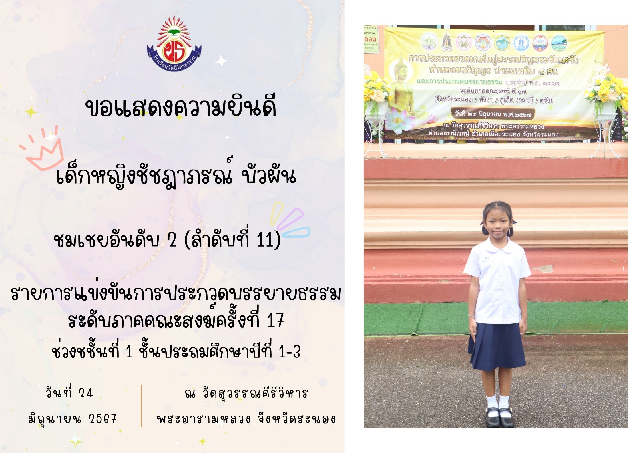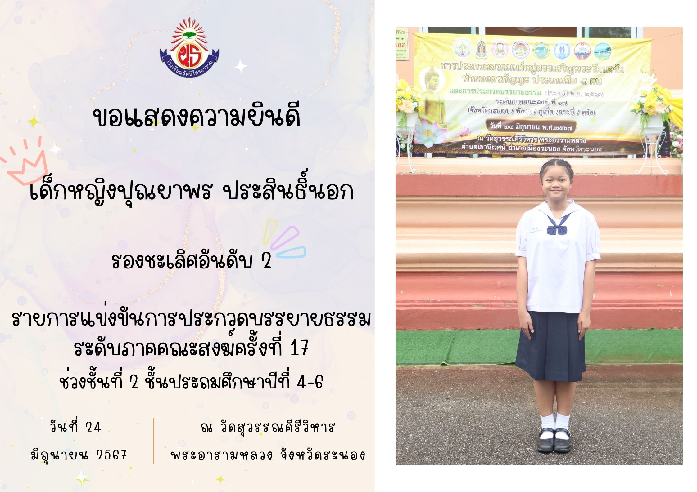 แข่งขันการประกวดบรรยายธรรม ระดับภาคคณะสงฆ์ครั้งที่ 17 ช่วงชั้นที่ 2 ชั้นประถมศึกษาปีที่ 4-6